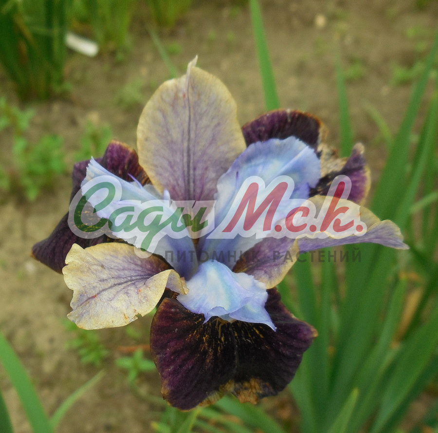 Ирис World Premier порадует вас льдисто-белыми стандартами и таким же ободком на сине-пурпурных фолах. Высота цветоноса 92 см.